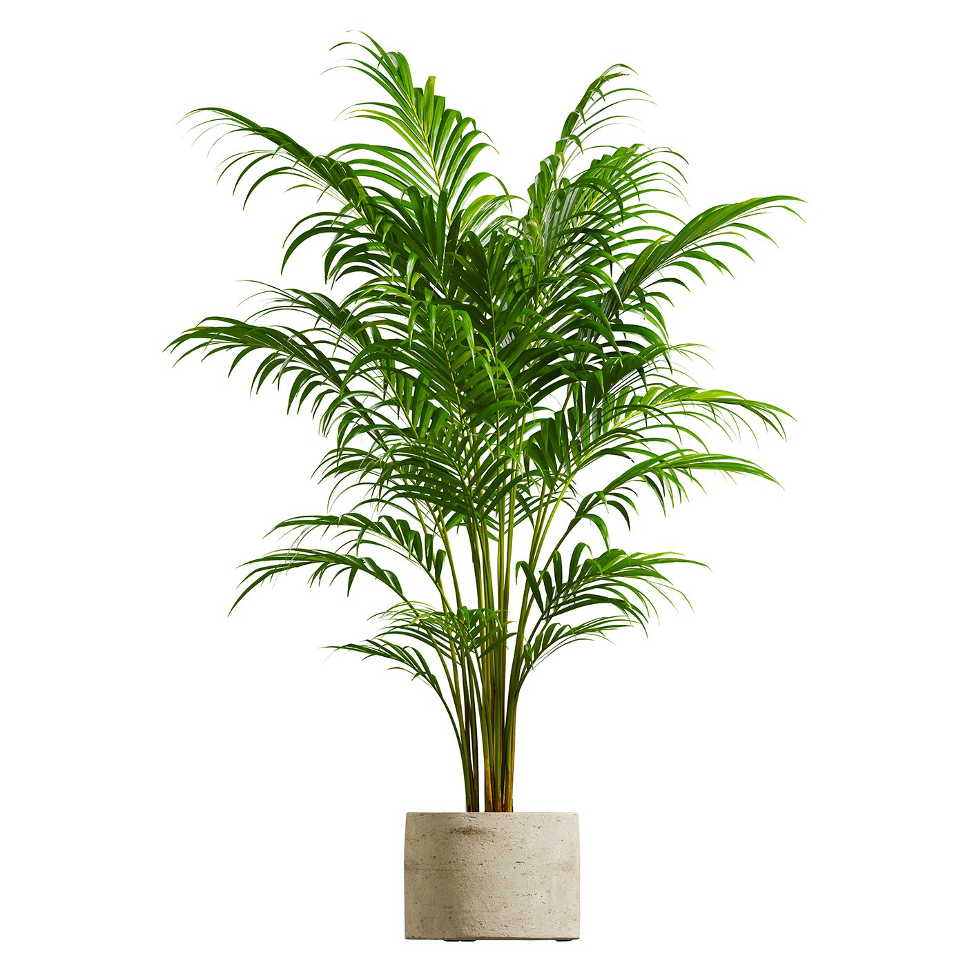 設計說明:展開的椰子葉配上水磨盆,葉片如羽,營造南洋渡假感。