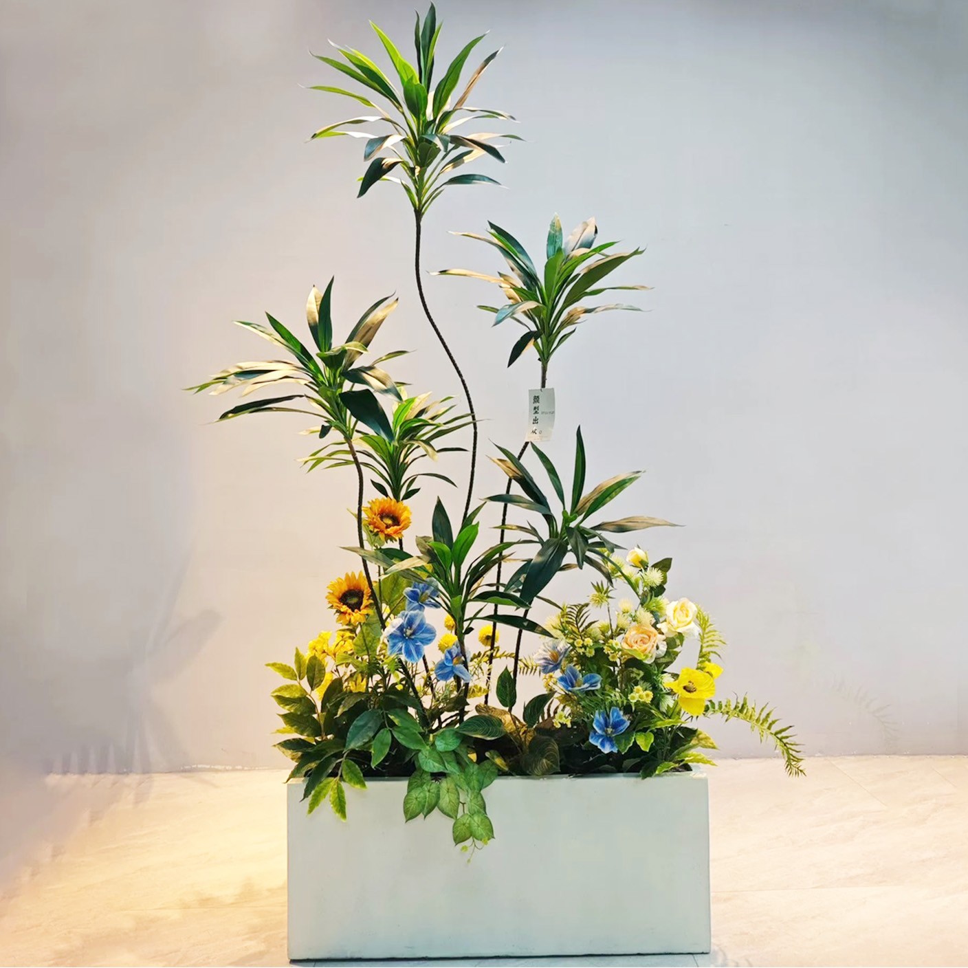 設計說明:繽紛色彩花卉與常綠觀葉混合,營造歐式庭院氛圍。
